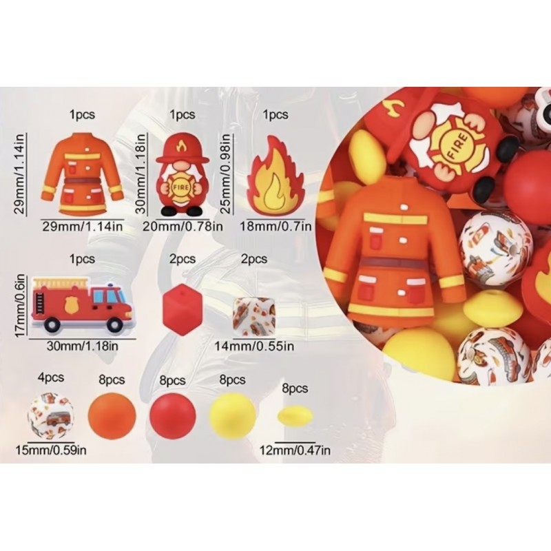 - 44 perles dont 4 fantaisies sur le thème pompier